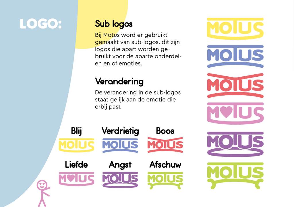 Motus is een samenwerkingsproject waarin ik verantwoordelijk was voor het logo, de sublogo’s, een korte animatie en het huisstijlhandboek. Mijn projectpartner ontwikkelde de mascottes, mock-ups en het kleurgebruik. Samen werkten we aan een opvallende, speelse maar doordachte visuele stijl die het concept versterkt.
